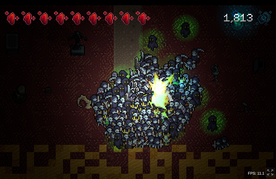 A 2D arcade action game where you control an army of undead minions.